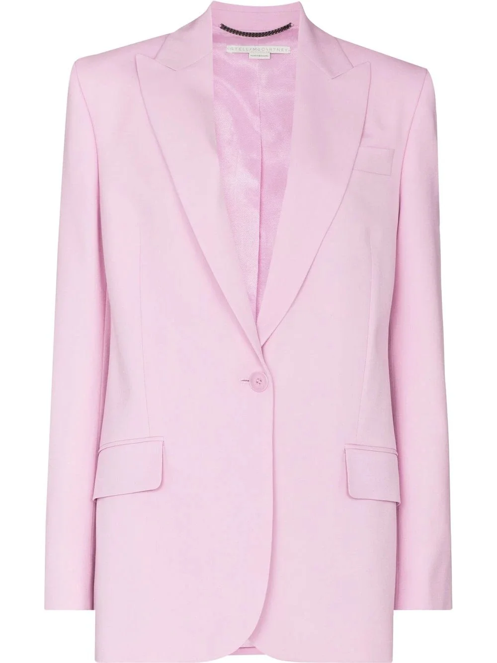 peak lapel blazer pink wool peak lapels front button fastening long sleeves buttoned cuffs chest welt pocket front flap pockets central rear vent full lining Imported Composition Lining: Viscose 52%, Cotton 48% Outer: Wool 100% SIZE & FIT Model measurements Height 5 ft 11 in(1.81 m) Bust/Chest 31.49 in(80 cm) Hips 35.82 in(91 cm) Waist 22.83 in(58 cm) Measurement SLEEVE LENGTH 25.98 in(66 cm) LENGTH 30.7 in(78 cm) Washing instructions Dry Clean Only