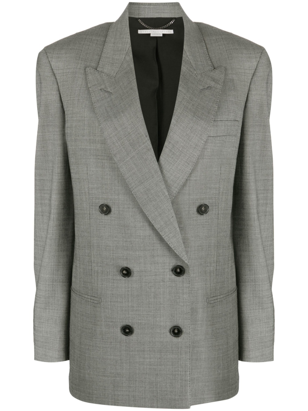 peak-lapels double-breasted blazer Cut for a tailored double-breasted silhouette, this blazer from Stella McCartney is crafted from stretch-infused wool. The piece is elegantly finished with classic peak lapels for a refined look. Highlights - Ash grey - Stretch-wool - Peak lapels - Double-breasted button fastening - Long sleeves - Buttoned cuffs - Two front welt pockets - Straight hem Imported Composition Outer: Wool 99%, Elastane 1% Lining: Viscose 52%, Cotton 48% SIZE & FIT Model measurements Height 5 ft 10 in(1.79 m) Bust/Chest 31.49 in(80 cm) Hips 35.03 in(89 cm) Waist 23.62 in(60 cm) Washing instructions Dry Clean Only