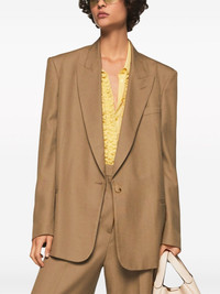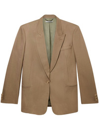 peak-lapels single-breasted blazer Highlights - Olive green - Interlock twill weave - Peak lapels - Front button fastening - Shoulder pads - Long sleeves - Buttoned cuffs - Chest welt pocket - Two front jetted pockets - English rear vents - Straight hem - Full lining Made in Italy Composition Viscose 100%
