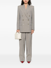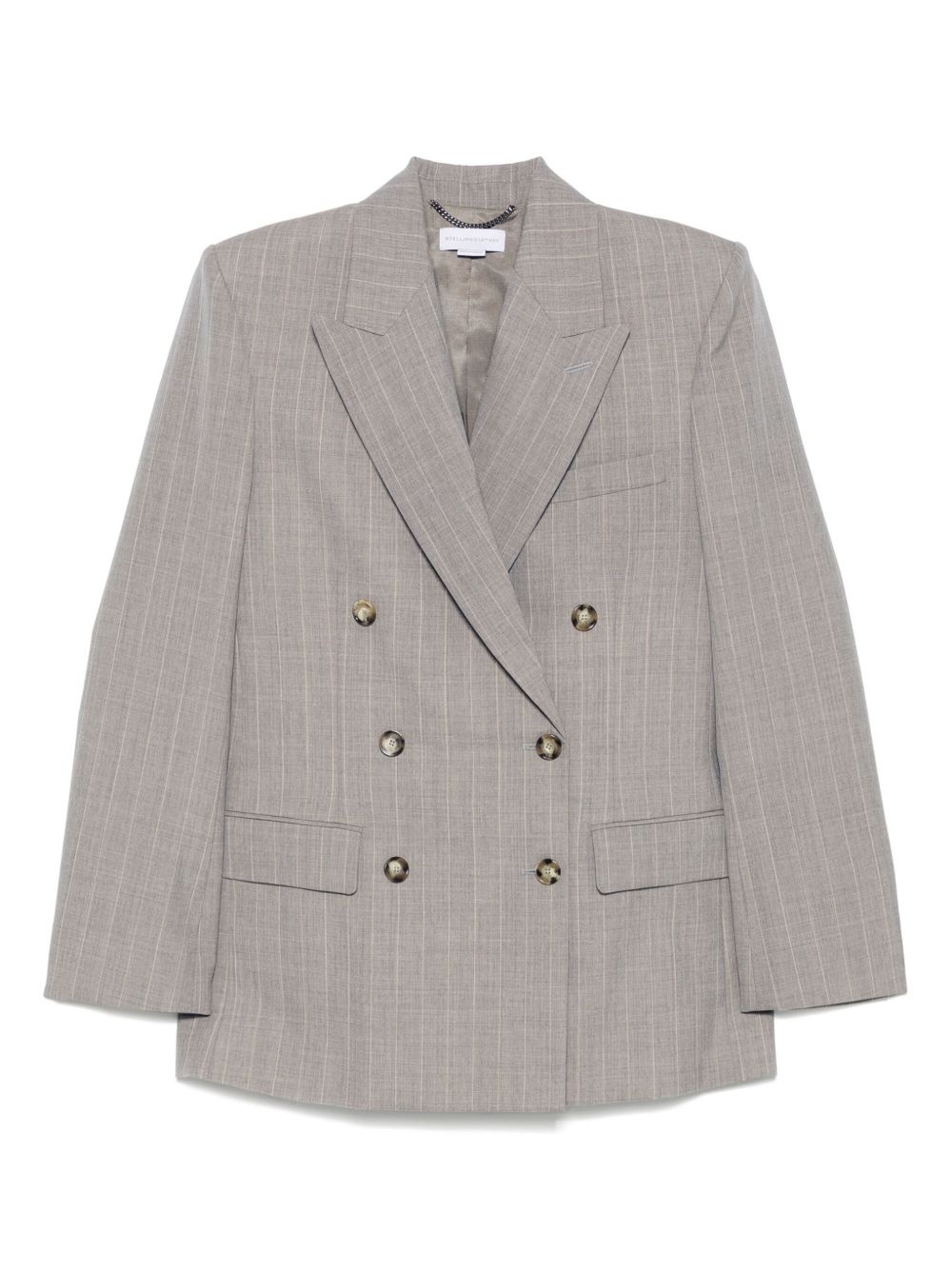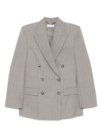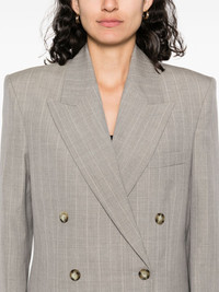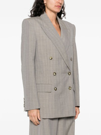 pinstripe-pattern blazer Highlights - Taupe grey - Double-breasted button fastening - Jetted chest pocket - Two front flap pockets - Buttoned cuffs Imported Composition Outer: Wool 100% Cotton 48% Lining: Viscose 52% SIZE & FIT Model measurements Height 5 ft 10 in(1.79 m) Bust/Chest 33.07 in(84 cm) Hips 35.82 in(91 cm) Waist 24.01 in(61 cm) FittingInformation Designed for a relaxed fit, this piece allows for comfort and movement when worn The internal shoulder pads offer a structured shape Made from a midweight non-stretch fabric
