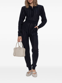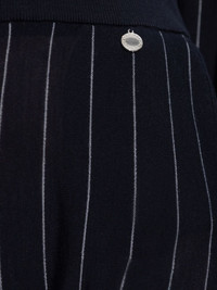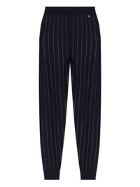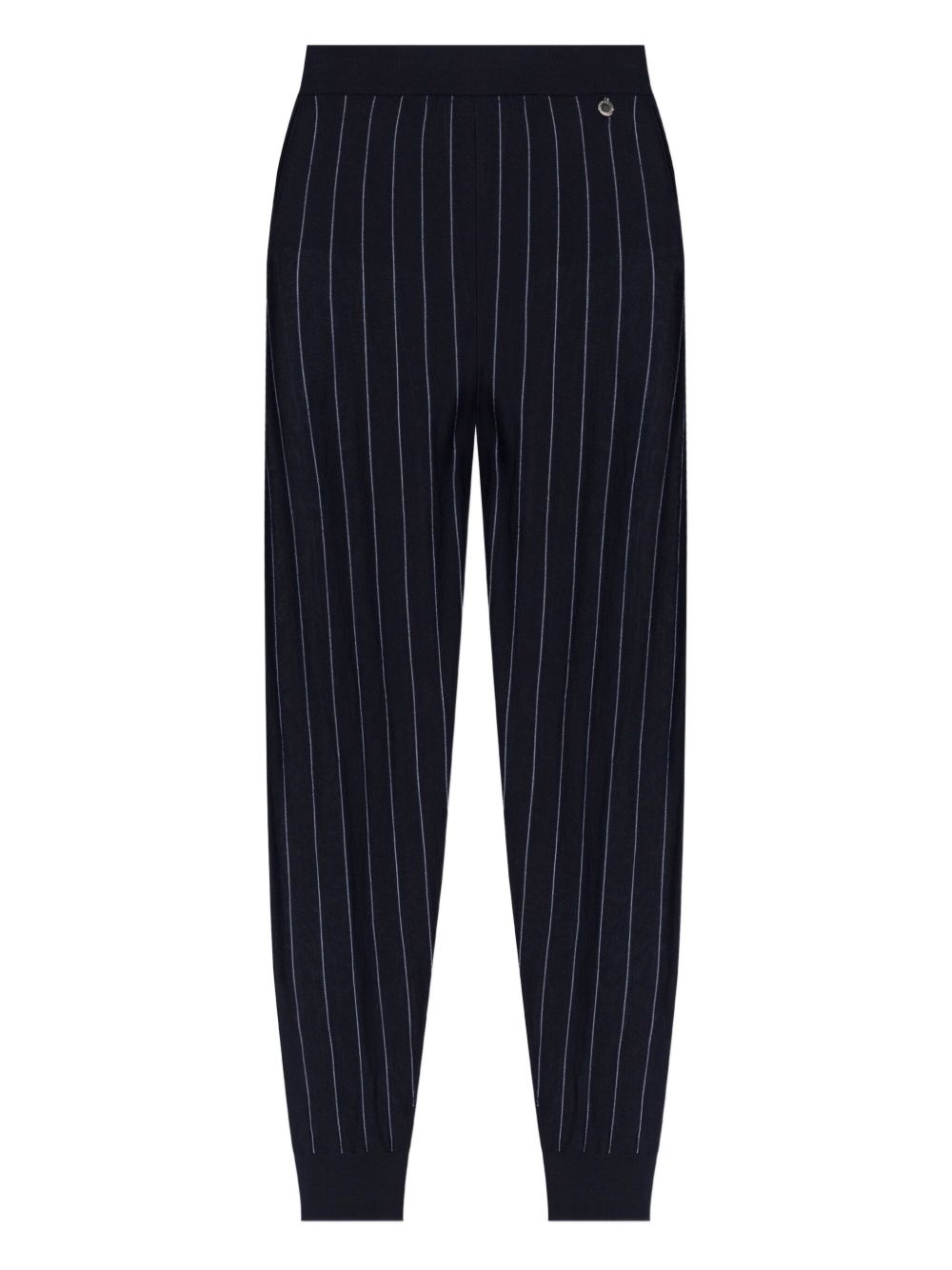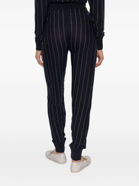 pinstripe-pattern track pants Highlights - Navy blue - Elasticated waistband - Logo plaque - Ribbed ankles Made in Italy Composition RWS Virgin Wool 100%