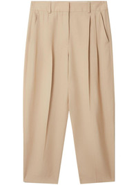 pleated tailored trousers Having been trained at Saville Row, Stella McCartney’s expert and fuss-free tailoring is part of her eponymous brand’s DNA. Crafted in a sand beige hue, these classic tailored trousers feature a concealed front fastening and pleated details that complement their cropped tapered silhouette. Highlights - Sand beige - Belt loops - Box-pleat detail - Concealed front fastening - Two side slit pockets - Tapered leg - Cropped leg Imported Composition Viscose 100% SIZE & FIT Measurement FRONT RISE 11.81 in(30 cm) INSIDE LEG 23.62 in(60 cm) HIPS 33.85 in(86 cm) WAIST 27.55 in(70 cm)