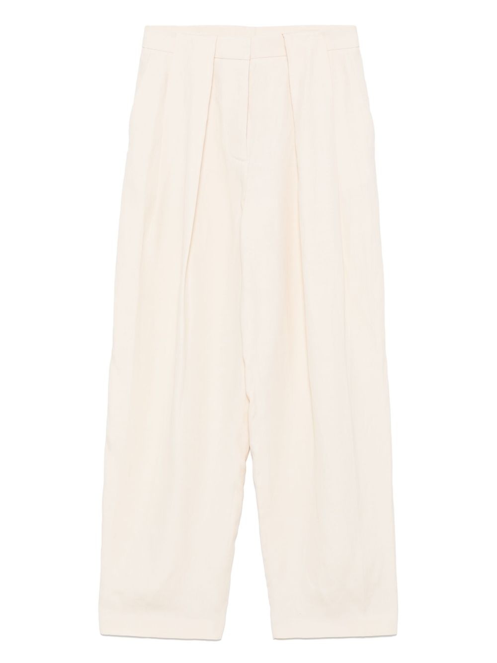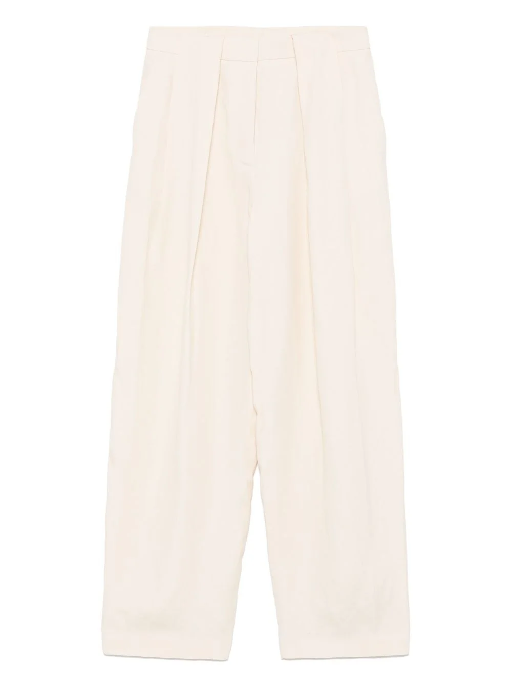 pleated trousers Highlights - Cream - Pleated front - High waist - Side pockets - Tailored design Made in Italy Composition Viscose 72%, Linen/Flax 28% SIZE & FIT Model measurements Height 5 ft 10 in(1.79 m) Bust/Chest 33.07 in(84 cm) Hips 35.82 in(91 cm) Waist 24.01 in(61 cm) FittingInformation Designed with a dropped crotch, these trousers allow for a close fit at the waist with a loose and relaxed fit through the leg Made from a lightweight non-stretch fabric Washing instructions Dry Clean Only