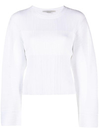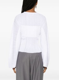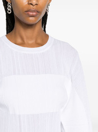 fine-knit plisse-effect top Highlights - White - Stretch-jersey - Fine ribbed - Plisse effect - Semi-sheer panels - Crew neck - Wide sleeves - Raw-cut hem Made in Italy Composition Outer: Viscose 84%, Polyamide 16% SIZE & FIT Model measurements Height 5 ft 11 in(1.8 m) Bust/Chest 31.49 in(80 cm) Hips 35.82 in(91 cm) Waist 24.8 in(63 cm) FittingInformation Designed for a slim fit that sits just away from the body offering a close yet comfortable fit The pleated construction on this piece allows for additional movement and flexibility in the fit This piece fits true to size – take your usual size Washing instructions Dry Clean Only