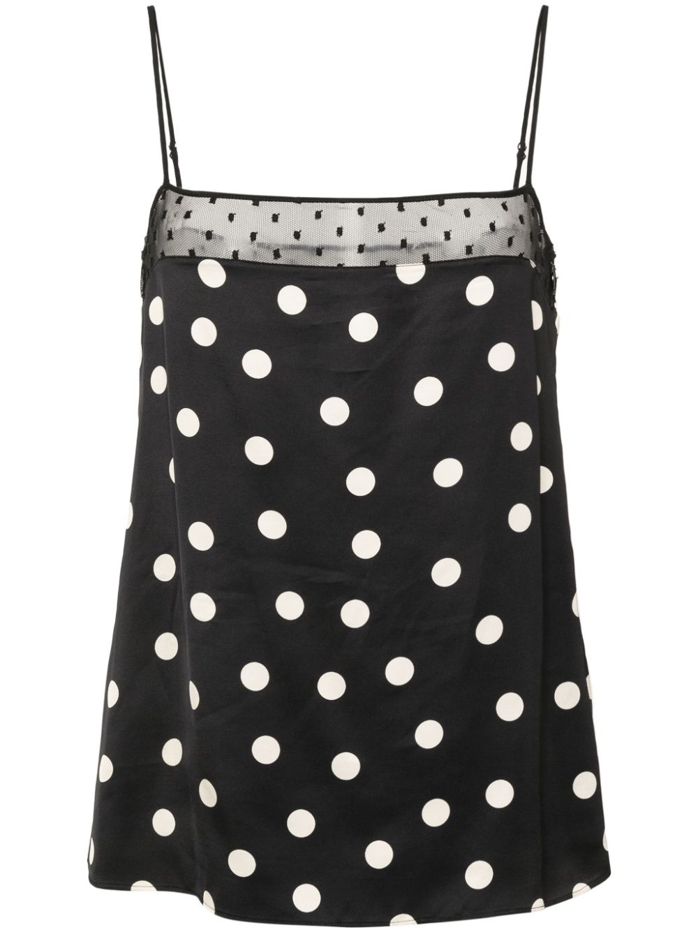 polka-dot satin top Highlights - Black/cream white - Satin finish - Polka dot print - Point d'esprit tulle - Adjustable spaghetti straps - Square neck - Sleeveless - Straight hem - Concealed side zip fastening Imported Composition Polyamide 100%, Viscose 100% SIZE & FIT Model measurements Height 5 ft 11 in(1.8 m) Bust/Chest 32.67 in(83 cm) Hips 36.22 in(92 cm) Waist 24.4 in(62 cm) FittingInformation Designed to be unstructured, offering a loose fit throughout The adjustable shoulder straps allow for a preferred fit when worn Made from a lightweight non-stretch fabric This piece fits true to size – take your usual size