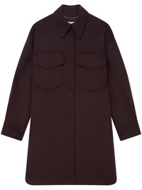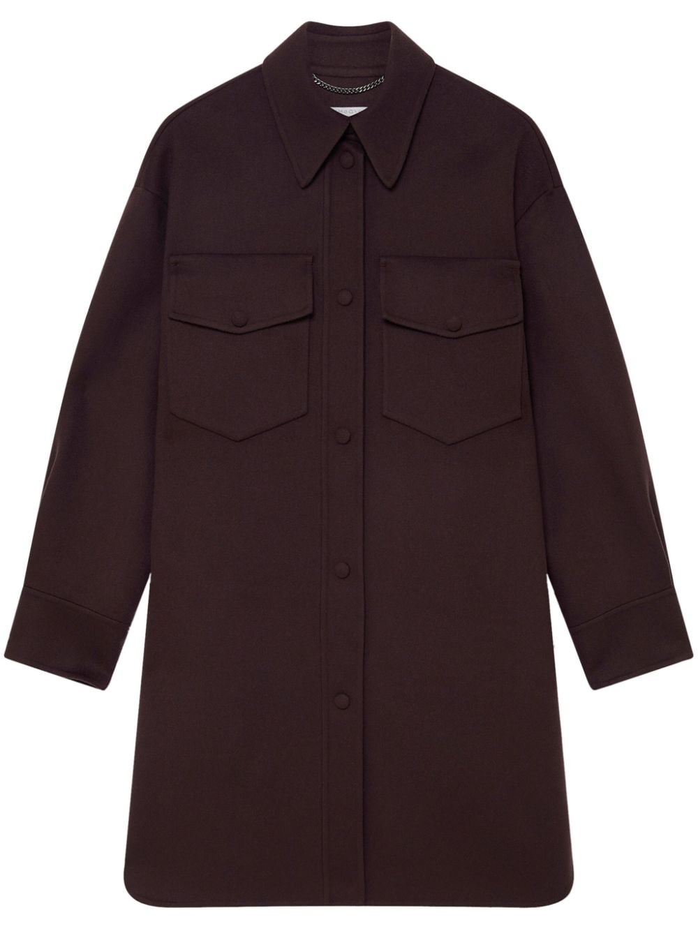 press-stud fastening overshirt Highlights - Chocolate brown - Front press-stud fastening - Classic collar - Chain-link detailing - Two front flap pockets - Long sleeves - Buttoned cuffs - Side slits - Curved hem - Knee-length Made in Italy Composition Fabric 100%