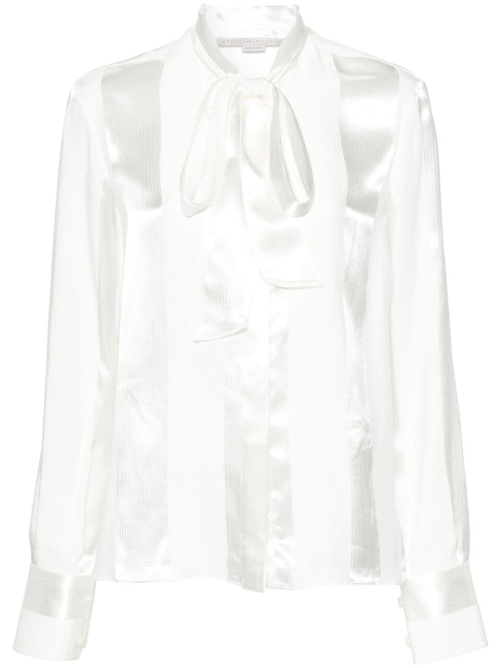 pussy-bow collar shirt Highlights - White - Vertical stripe pattern - Pussy-bow collar - Long sleeves - Buttoned cuffs - Straight hem - Concealed front button fastening Made in Italy Composition Viscose 100% SIZE & FIT Model measurements Height 5 ft 10 in(1.78 m) Bust/Chest 33.07 in(84 cm) Hips 36.61 in(93 cm) Waist 24.8 in(63 cm) FittingInformation Designed for a relaxed fit, this piece allows for comfort and movement when worn Made from a lightweight non-stretch fabric This piece fits true to size – take your usual size