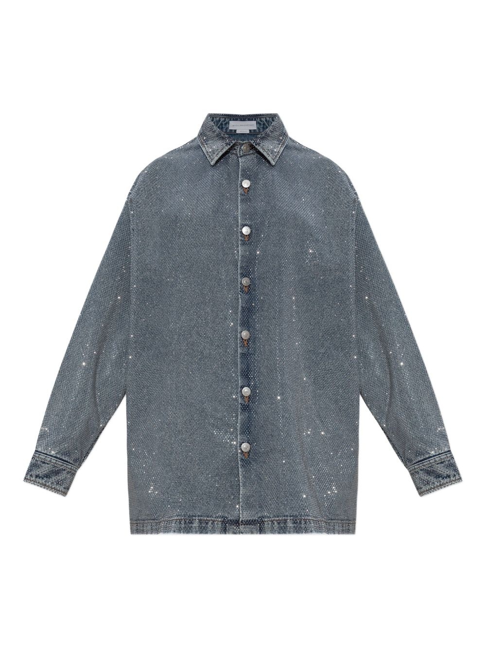 rhinestone-embellished shirt Highlights - Silver-tone - Front button fastening - Buttoned cuffs - Drop shoulder - Long sleeves Made in Italy Composition Cotton 100%