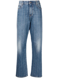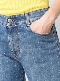 rhinestone-embellished straight-leg jeans Adding a refined twist to denim, Stella McCartney adorns these straight-leg jeans with glistening rhinestones and distressed accents at the knee. With a mid-rise and classic five-pocket design, they're finished with a signature logo patch at the rear. Highlights - Blue - Cotton - Rhinestone embellishment - Straight hem - Mid-rise - Front button and zip fastening - Classic five pockets - Distressed effect - Logo patch to the rear Made in Italy Composition Cotton 100% SIZE & FIT Model measurements Height 5 ft 9 in(1.75 m) Bust/Chest 32.67 in(83 cm) Hips 36.22 in(92 cm) Waist 24.8 in(63 cm) Measurement FRONT RISE 11.02 in(28 cm) HIPS 39.37 in(100 cm) WAIST 28.34 in(72 cm) Washing instructions Dry Clean Only
