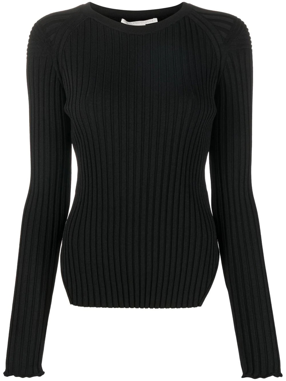 rib-knit long-sleeve top black ribbed knit crew neck long sleeves Made in Italy Composition Viscose 83%, Polyester 17% SIZE & FIT Model measurements Height 5 ft 9 in(1.75 m) Bust/Chest 32.67 in(83 cm) Hips 36.22 in(92 cm) Waist 24.8 in(63 cm) FittingInformation This piece fits true to size. We recommend you get your regular size Cut for a slim fit Made with a mid-weight fabric Washing instructions Hand Wash