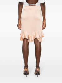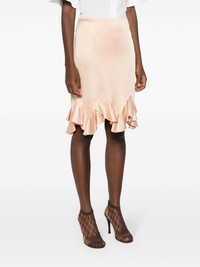 ruffled satin midi skirt Highlights - Blush beige - Satin weave - Ruffled detailing - Side zip fastening Made in Italy Composition Viscose 59%, Acetate 41% SIZE & FIT Model measurements Height 5 ft 10 in(1.78 m) Bust/Chest 31.49 in(80 cm) Hips 37 in(94 cm) Waist 23.62 in(60 cm) FittingInformation This mini-length skirt is intended to be worn just below the waist Made from a lightweight non-stretch fabric This piece fits true to size – take your usual size