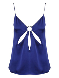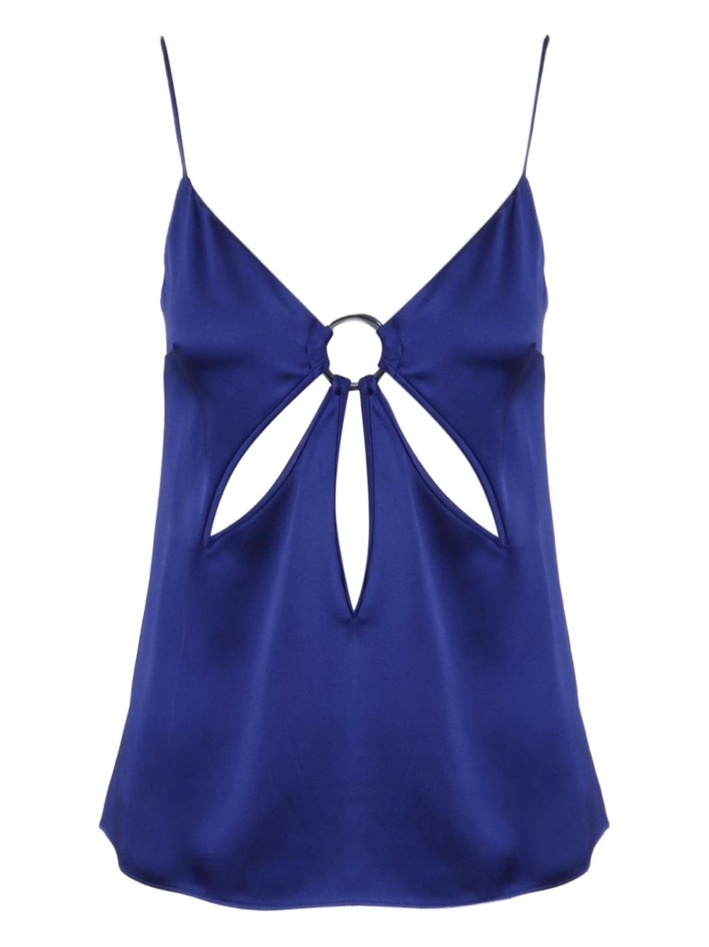 satin top Highlights - Electric blue - Cut-out detailing - Ring embellishment - V-neck - Thin shoulder straps Made in Italy Composition Acetate 64%, Viscose 36%