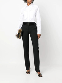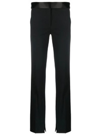 satin-waistband detail trousers Highlights - Black - Recycled polyester blend - Pressed crease - Satin waistband - Concealed front fastening - Two side inset pockets Imported Composition Outer: Viscose 72%, Recycled Polyester 53%, Wool 43%, Silk 28%, Elastane 4% Lining: Viscose 60%, Recycled Polyester 40% SIZE & FIT Model measurements Height 5 ft 11 in(1.8 m) Bust/Chest 31.49 in(80 cm) Hips 35.82 in(91 cm) Waist 24.8 in(63 cm) FittingInformation This piece fits true to size. We recommend you get your regular size Designed to be fitted at the waist and hips, loose over the leg Made with a mid-weight fabric