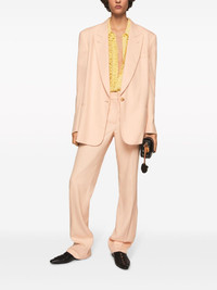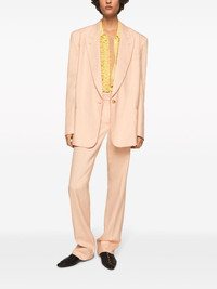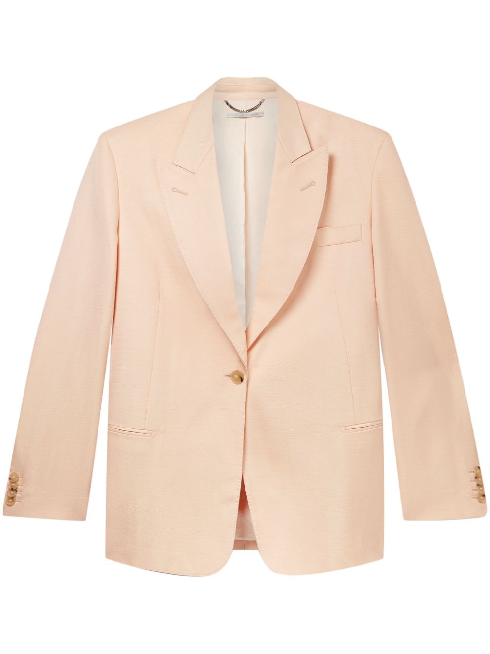 single-breasted peak-lapels blazer Highlights - Light orange - Peak lapels - Long sleeves - Buttoned cuffs - Chest welt pocket - Two front jetted pockets - English rear vents - Full lining - Front button fastening Made in Italy Composition Viscose 100%
