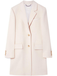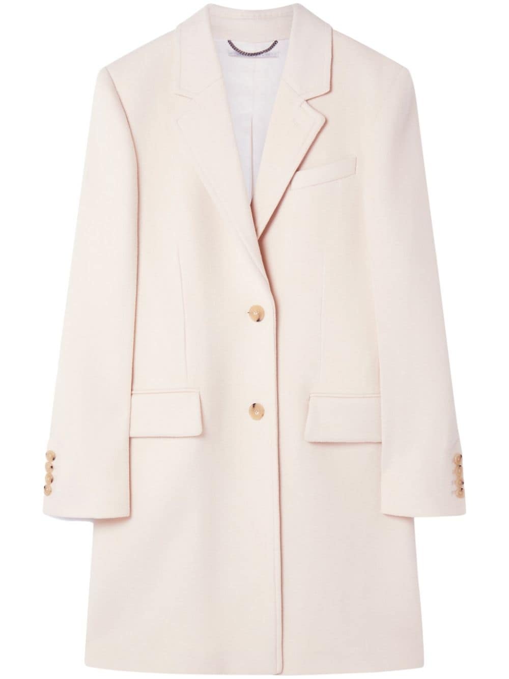 single-breasted wool coat Stella McCartney takes inspiration from classic outerwear in the design of this coat. It’s crafted from beige wool with complementary tortoiseshell buttons and framed with notch lapels. Highlights - Cream white - Wool - Notched lapels - Chest welt pocket - Front button fastening - Long sleeves - Buttoned cuffs - Two front flap pockets - American rear vent - Thigh length - Straight hem Made in Italy Composition Wool 100% SIZE & FIT Measurement SLEEVE LENGTH 30.31 in(77 cm) HIPS 44.88 in(114 cm) LENGTH 36.61 in(93 cm) WAIST 37 in(94 cm) BUST 37.79 in(96 cm) Shoulder Width 16.53 in(42 cm) FittingInformation Designed for a slim fit that sits just away from the body offering a close yet comfortable fit The internal shoulder pads offer a structured shape Made from a midweight non-stretch fabric