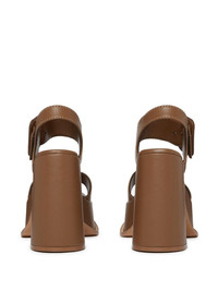Skyla 100mm platform sandals Highlights - Camel brown - Square open toe - Side buckle fastening - Branded footbed - 100mm block heel - Platform sole Made in Italy Composition Other fibres 100%