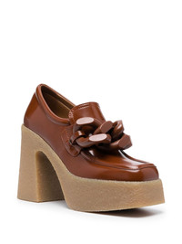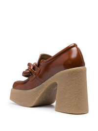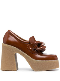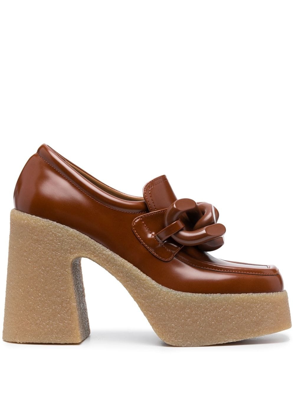 Skyla 110mm square-toe pumps Highlights - Camel brown - Chain-link detailing - Square toe - Slip-on style - Branded insole - High block heel - Platform sole - Chunky rubber sole Made in Italy Composition Other fibres 100% SIZE & FIT Measurement HEEL 4.33 in(11 cm) PLATFORM 1.57 in(4 cm)