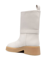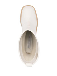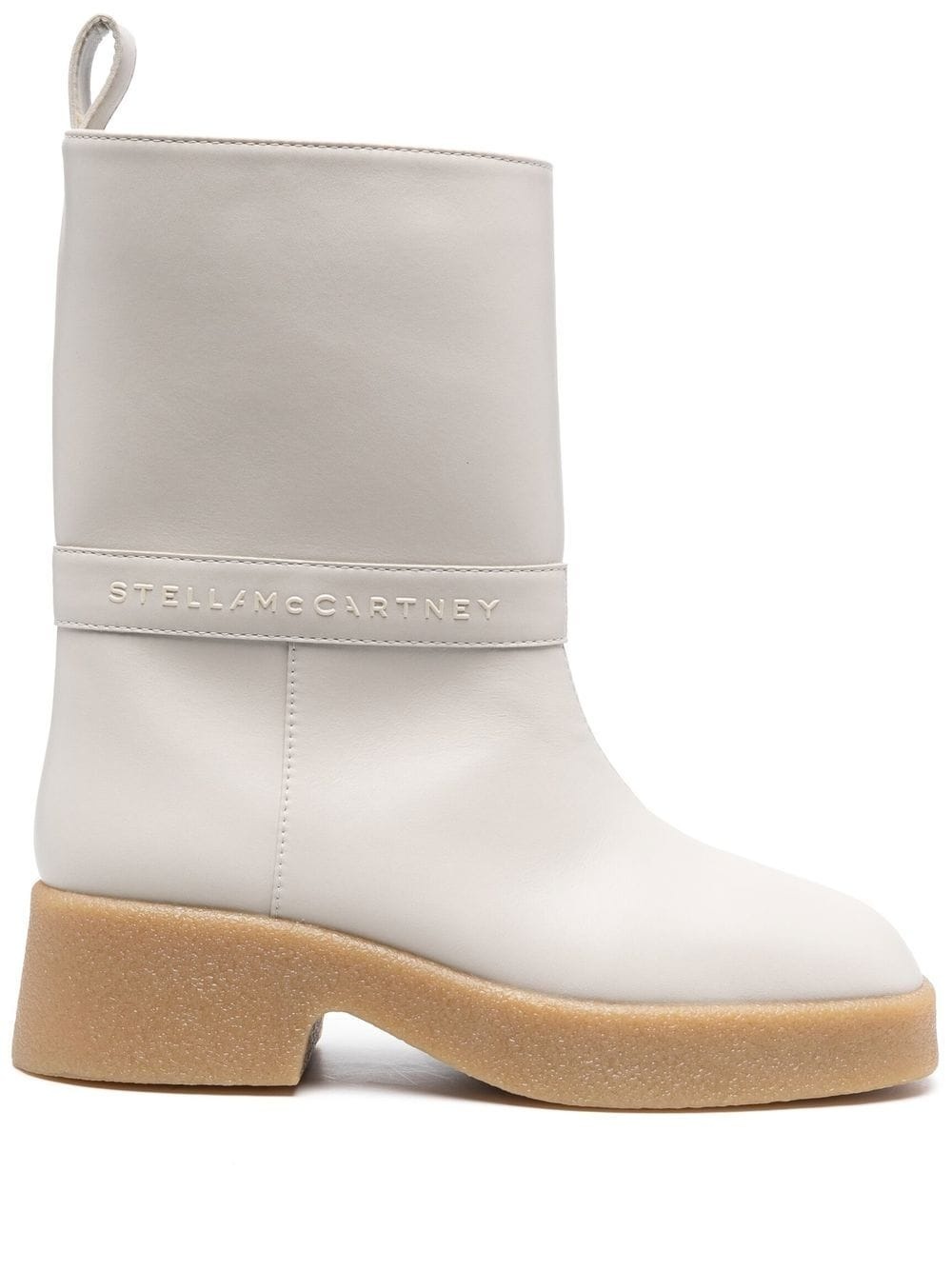 Skyla mini boots Defined by its chunky rubber sole and wide opening, Stella McCartney's 'Skyla' mini ankle boots are crafted from the brand's signature faux leather. An embossed logo presents a signature finishing touch. Highlights - Cloud white - Faux leather - Embossed logo to the side - Pull-tab at the heel - Rounded square toe - Chunky rubber sole Made in Italy Composition Other fibres 100% SIZE & FIT Measurement CIRCUMFERENCE 12.4 in(31.5 cm) HEEL 1.96 in(5 cm) HEIGHT 7.87 in(20 cm) Sole height 1.18 in(3 cm)