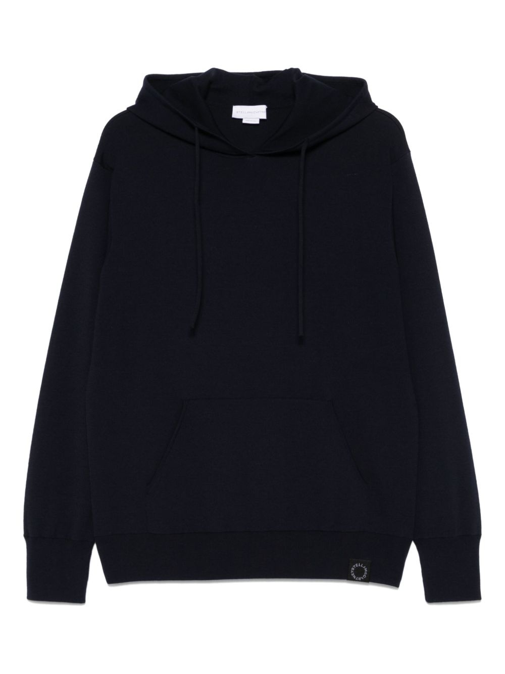 slouchy drawstring hoodie Highlights - Navy blue - Front pouch pocket - Ribbed cuffs and hem - Logo tag Made in Italy Composition Wool 100%, RWS Wool 95%, Polyamide 4%, Elastane 1%