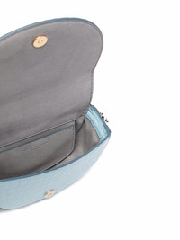 small Frayme flap shoulder bag Stella McCartney updates its signature diamond-cut chain detailing each season, refreshing the classic trim for new silhouettes. Crafted from crocodile-embossed faux leather, this small Frayme flap shoulder bag is embellished with the chunky gold and silver-tone chain, interwoven with the trademark whipstitch detailing. Highlights - Light blue - Faux leather - Embossed crocodile effect - Signature diamond-cut chain-link trim - Whipstitch detailing - Logo charm - Gold-tone hardware - Silver-tone hardware - Front flap closure - Magnetic fastening - Internal slip pocket - Adjustable detachable shoulder strap Made in Italy Composition Outer: Polyurethane 69%, Polyester 31% Lining: Polyamide 50%, Polyurethane 50% SIZE & FIT Model measurements Height 5 ft 11 in(1.8 m) Bust/Chest 31.49 in(80 cm) Hips 35.82 in(91 cm) Waist 24.8 in(63 cm) Measurement DEPTH 2.75 in(7 cm) HANDLE 9.84 in(25 cm) HEIGHT 5.11 in(13 cm) STRAP 14.17 in(36 cm) WIDTH 6.69 in(17 cm)