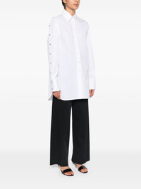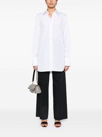 Snapped shirt Highlights - White - Cotton - Poplin texture - Classic collar - Front button fastening - Press-stud fastening long sleeves and cuffs - Side slits - Curved hem Imported Composition Cotton 100% SIZE & FIT Model measurements Height 5 ft 9 in(1.76 m) Bust/Chest 31.88 in(81 cm) Hips 35.43 in(90 cm) Waist 24.8 in(63 cm) FittingInformation Designed to be unstructured, offering a loose fit throughout Made from a midweight non-stretch fabric This piece fits true to size – take your usual size Washing instructions Dry Clean Only