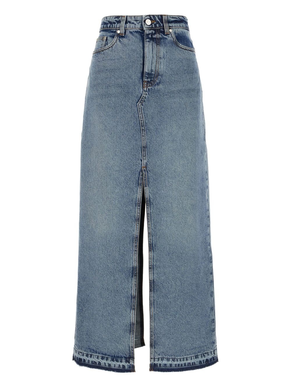 split-detail denim skirt Highlights - Light blue - Front split - Contrasting back panel - Mid-rise design Made in Italy Composition Cotton 100%