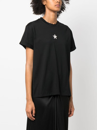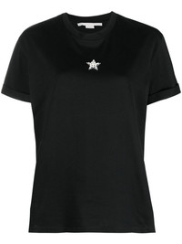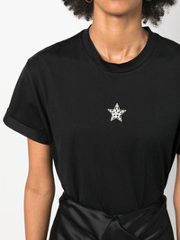 star-print faux-pearl-embellished T-shirt Highlights - Black - Cotton - Star print - Faux-pearl embellishment - Crew neck - Short sleeves - Turn-up cuffs - Straight hem Imported Composition Cotton 100%, Plastic 100% SIZE & FIT Model measurements Height 5 ft 10 in(1.77 m) Bust/Chest 33.07 in(84 cm) Hips 37 in(94 cm) Waist 24.8 in(63 cm) FittingInformation Designed to be unstructured, offering a loose fit throughout Made from a midweight non-stretch fabric, this piece offers minimal elasticity when worn This piece fits true to size – take your usual size