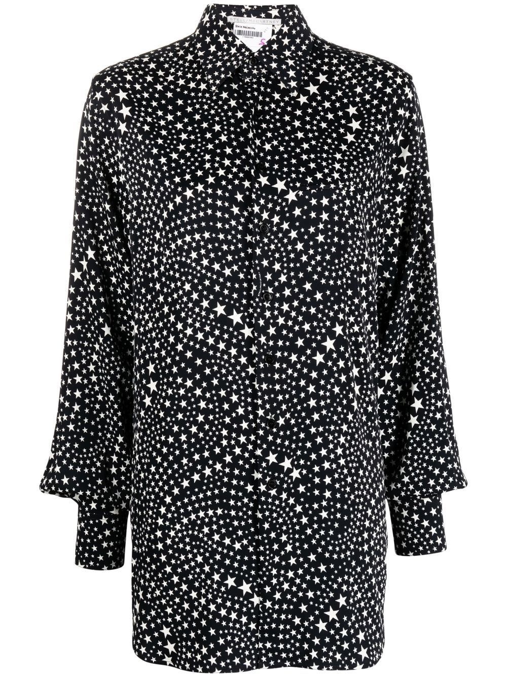 star-print long-sleeve shirt Highlights - Black/white - Organic silk - Star print - Pointed flat collar - Front button fastening - Long sleeves - Buttoned cuffs - Side slits - Side slits - Curved hem Imported Composition Organic Silk 100% SIZE & FIT Model measurements Height 5 ft 8 in(1.73 m) Bust/Chest 33.46 in(85 cm) Hips 36.61 in(93 cm) Waist 24.8 in(63 cm) FittingInformation This piece fits true to size. We recommend you get your regular size Cut for a loose fit Made with a mid-weight non-stretch fabric Washing instructions Dry Clean Only
