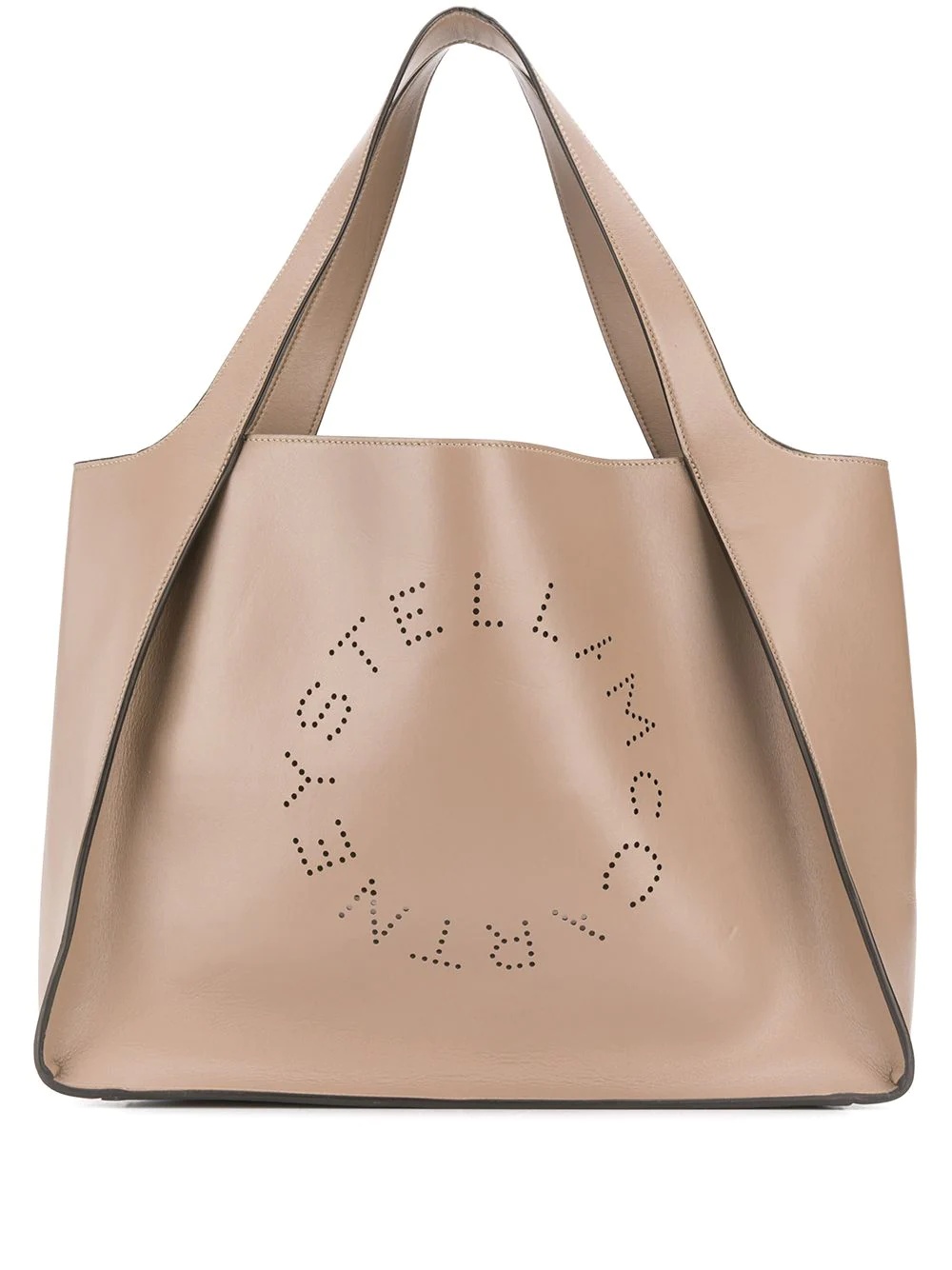 Stella Logo tote bag Stella McCartney's eco-conscious approach to fashion is not limited to using sustainably sourced fabrics - the designs are made to be timeless and to last, as exemplified by this light brown Stella Logo tote bag. It features top handles, a perforated logo and a removable pouch. POSITIVELY CONSCIOUS: We’ve joined forces with ethical agency Good On You to give you the power to choose positively. This piece is from a brand that scores well on their key criteria. Made in Italy Composition Outer: Polyurethane 100% SIZE & FIT Model measurements Height 5 ft 11 in(1.8 m) Bust/Chest 31.49 in(80 cm) Hips 35.82 in(91 cm) Waist 24.8 in(63 cm) Measurement DEPTH 5.9 in(15 cm) HANDLE 10.23 in(26 cm) HEIGHT 11.81 in(30 cm) WIDTH 15.74 in(40 cm)