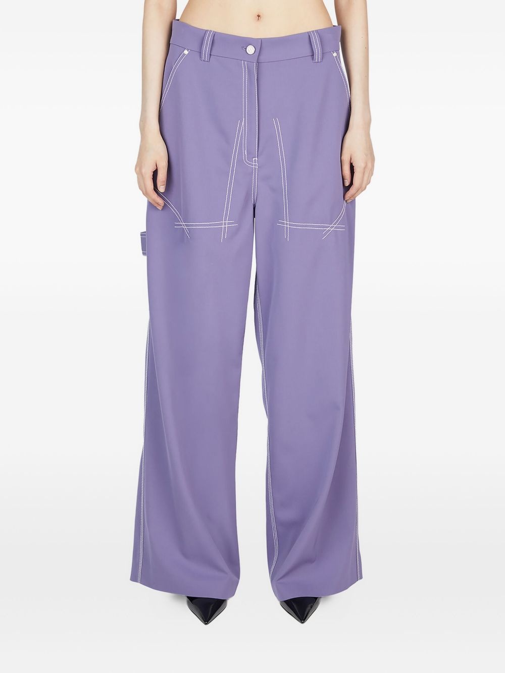 straight-leg trousers Highlights - Purple - Front button and zip fastening - Belt loops - Two side slit pockets - Two rear patch pockets Imported Composition Polyester 55%, Cotton 45% Washing instructions Dry Clean Only