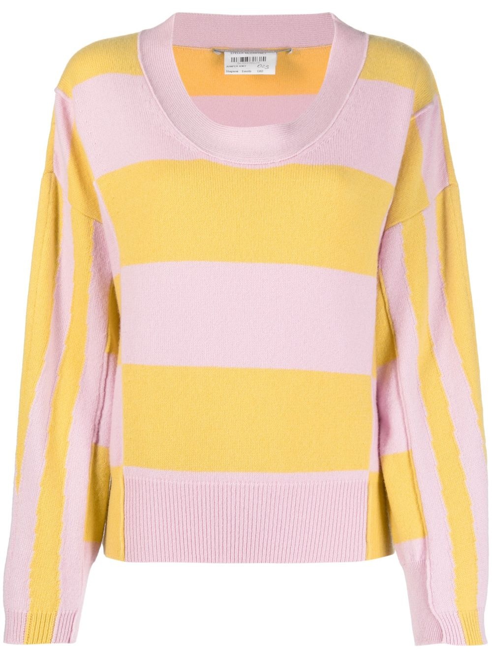 stripe-print jumper Imbued with vibrant tones, Stella McCartney's SS22 collection includes this jumper. In eye-catching shades of yellow and pink, this striped design perfectly captures the brand's colourful new direction. Highlights - Pale pink/yellow - Wool - Horizontal stripe pattern - Ribbed edge - Scoop neck - Drop shoulder - Long sleeves Imported Composition Wool 100% SIZE & FIT Model measurements Height 5 ft 11 in(1.8 m) Bust/Chest 31.88 in(81 cm) Hips 35.03 in(89 cm) Waist 24.01 in(61 cm) Washing instructions Read Manufacturer Guidelines