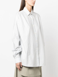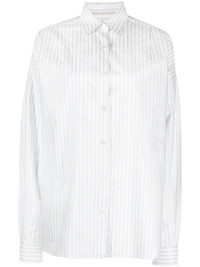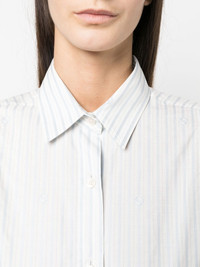 stripe-print long-sleeved shirt Highlights - White/blue - Cotton - Stripe print - Front button fastening - Classic collar - Long sleeves - Buttoned cuffs - Straight hem Made in Italy Composition Cotton 100% SIZE & FIT Model measurements Height 5 ft 10 in(1.78 m) Bust/Chest 30.7 in(78 cm) Hips 33.85 in(86 cm) Waist 23.22 in(59 cm) Measurement LENGTH 30.7 in(78 cm) FittingInformation This piece fits true to size. We recommend you get your regular size Cut for a loose fit Made with a mid-weight non-stretch fabric Washing instructions Dry Clean Only
