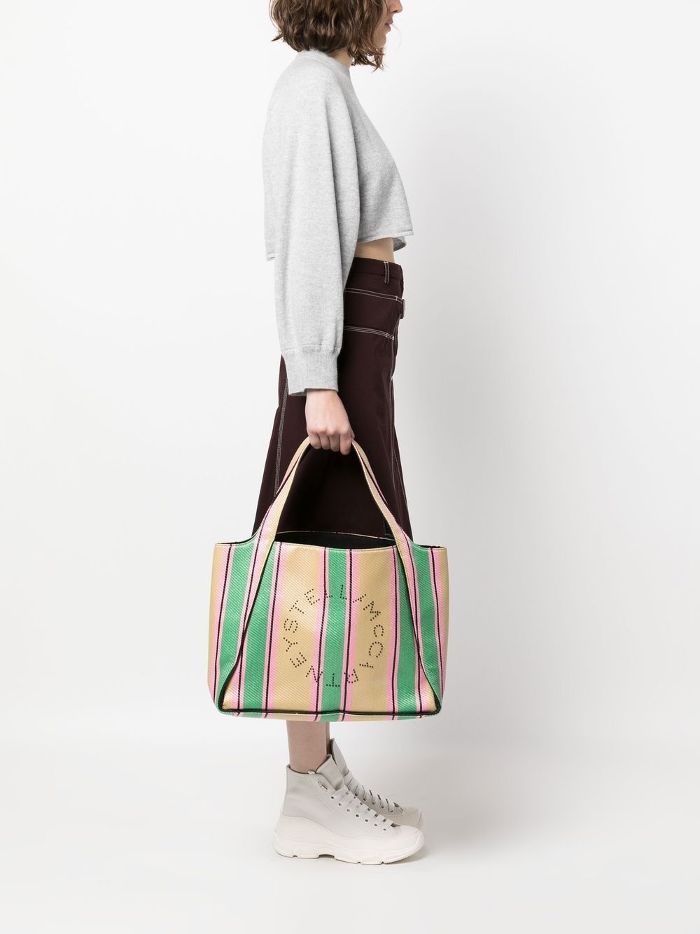 stripe-print raffia tote bag Highlights - Multicolour - Interwoven design - Stripe print - Logo embellishment - Two top handles - Main compartment Made in Italy Composition Outer: Polyester 50%, Polyamide 50% SIZE & FIT Model measurements Height 5 ft 10 in(1.79 m) Bust/Chest 32.67 in(83 cm) Hips 34.25 in(87 cm) Waist 24.4 in(62 cm) Measurement DEPTH 5.51 in(14 cm) HANDLE 7.08 in(18 cm) HEIGHT 11.81 in(30 cm) WIDTH 18.89 in(48 cm)