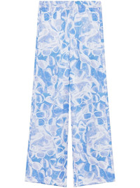 sunglasses print pajama trousers Highlights - Light blue - Organic silk - Mid-rise - Straight leg - All-over graphic print - Slip-on style - Elasticated waistband Imported Composition Organic Silk 100% SIZE & FIT Measurement HIPS 37 in(94 cm) Outside Leg 43.7 in(111 cm) WAIST 29.92 in(76 cm)