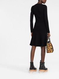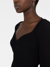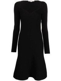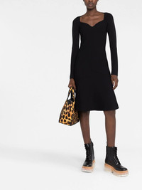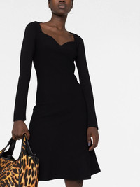 sweetheart-neck flared dress Highlights - Black - Sweetheart neck - Long sleeves - Flared skirt Made in Italy Composition Viscose 83%, Polyester 17% SIZE & FIT Model measurements Height 5 ft 11 in(1.8 m) Bust/Chest 32.67 in(83 cm) Hips 36.22 in(92 cm) Waist 24.4 in(62 cm) FittingInformation This piece fits true to size. We recommend you get your regular size Designed for a close fit at the bust, waist and hips Made with a mid-weight fabric Washing instructions Dry Clean Only