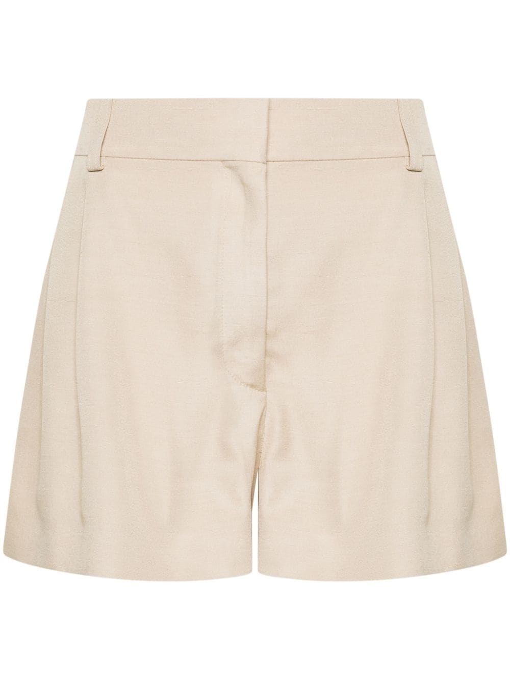 tailored short shorts Highlights - Beige - Tailored design - Belt loops - Two side slash pockets - Pleat detailing - Thigh-length - Two rear welt pockets - Concealed front button, hook and zip fastening Imported Composition Viscose 100% SIZE & FIT Model measurements Height 5 ft 11 in(1.8 m) Bust/Chest 32.28 in(82 cm) Hips 35.03 in(89 cm) Waist 24.8 in(63 cm) FittingInformation Designed for a relaxed, roomy fit Made from a midweight non-stretch fabric This piece fits true to size – take your usual size Washing instructions Dry Clean Only