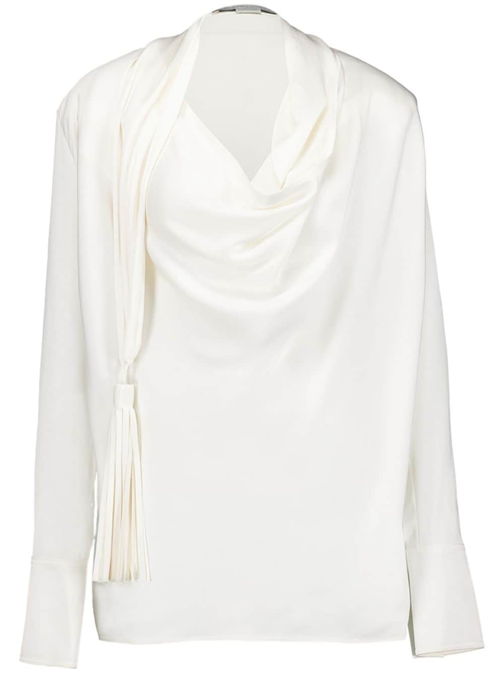 Tasseled draped satin-crepe blouse