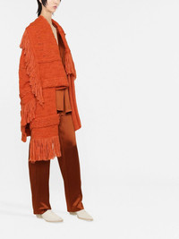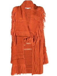 asymmetric fringed cardi-coat Stella McCartney puts its own unique spin on knitwear with this textured cardigan made from an alpaca wool-blend. This chunky design packs a punch thanks to its tangerine-orange hue and asymmetrical layers detailed with thick fringing. Highlights - Tangerine orange - Alpaca wool-blend - Knitted construction - Asymmetric design - Fringed edge - Long sleeves - Oversized style Made in Italy Composition Alpaca Wool 57%, Wool 24%, Polyamide 19% SIZE & FIT Model measurements Height 5 ft 11 in(1.8 m) Bust/Chest 31.49 in(80 cm) Hips 35.43 in(90 cm) Waist 25.19 in(64 cm) Measurement CHEST 52.75 in(134 cm) SLEEVE LENGTH 20.07 in(51 cm) LENGTH 31.49 in(80 cm) FittingInformation This piece fits true to size. We recommend you get your regular size Cut for a loose fit Made with a mid-weight fabric Washing instructions Dry Clean Only