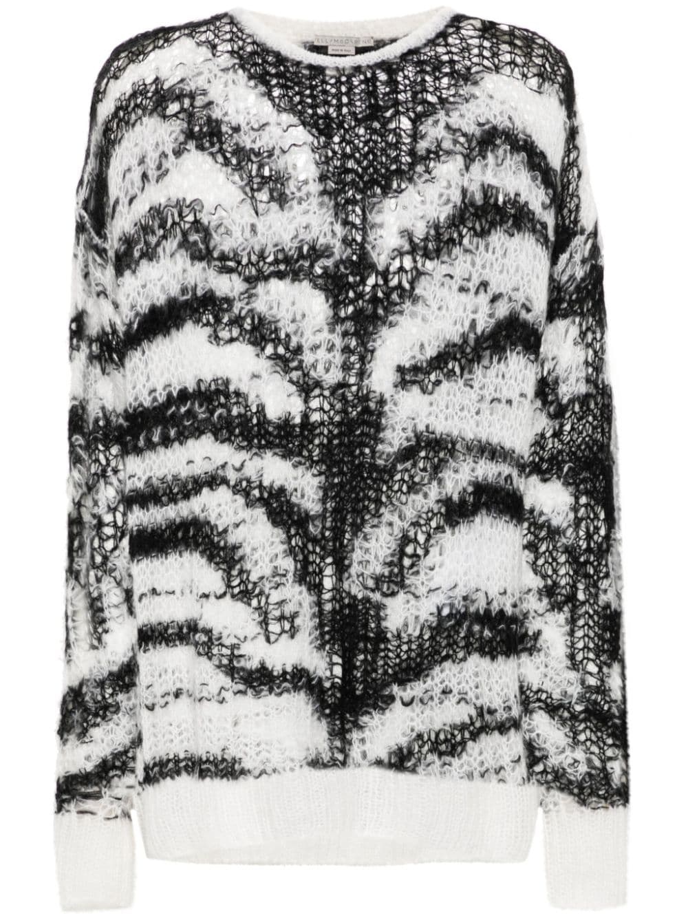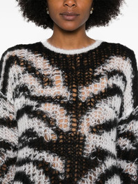 tiger-pattern open-knit jumper Highlights - Black/white - Alpaca wool-blend - Open knit - All-over tiger pattern - Crew neck - Drop shoulder - Long sleeves - Ribbed cuffs and hem Made in Italy Composition Alpaca 78%, Polyamide 22% SIZE & FIT Model measurements Height 5 ft 11 in(1.8 m) Bust/Chest 32.67 in(83 cm) Hips 35.82 in(91 cm) Waist 25.98 in(66 cm) FittingInformation Designed to be unstructured, offering a loose fit throughout Made with a lightweight knit, this piece offers some stretch This piece fits true to size – take your usual size
