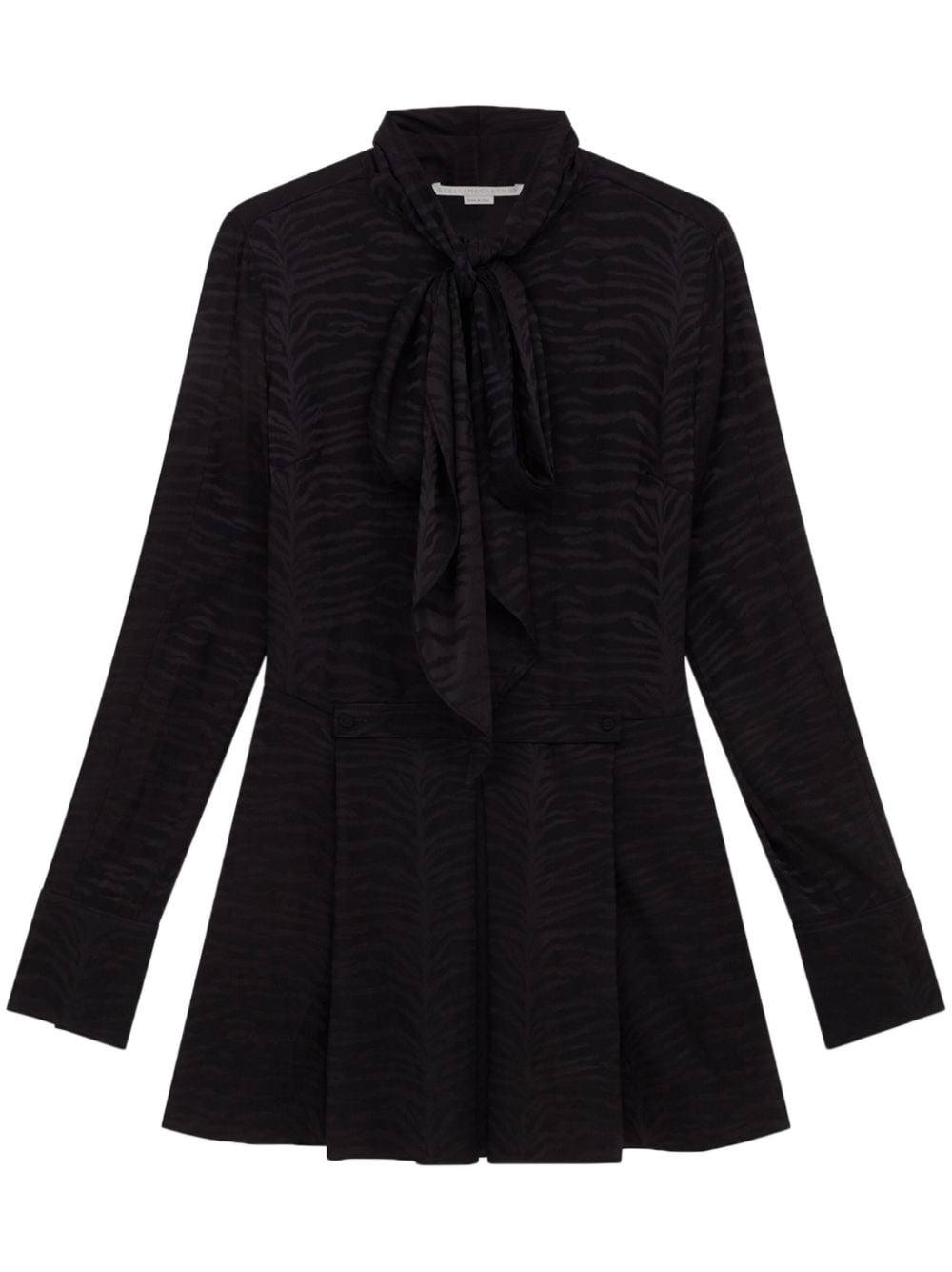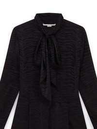 tiger-print organic silk minidress Highlights - Jet black - Organic silk - Tiger print - Pleat detailing - Gathered tie neck - Zip fastening - Long sleeves - Buttoned cuffs - Straight hem - Thigh-length Made in Italy Composition Organic Silk 100%