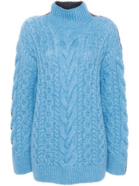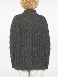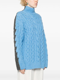 two-tone cable-knit jumper Highlights - Blue/grey - Alpaca wool-blend - Chunky cable knit - Two-tone design - High neck - Drop shoulder - Long sleeves - Ribbed cuffs and hem Made in Italy Composition Alpaca 68%, Polyamide 22%, Wool 10% SIZE & FIT Model measurements Height 5 ft 9 in(1.75 m) Bust/Chest 34.64 in(88 cm) Hips 36.61 in(93 cm) Waist 26.37 in(67 cm) FittingInformation Designed for an oversized fit, offering additional room throughout Made with a midweight knit, this piece offers some stretch This piece fits true to size – take your usual size