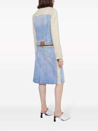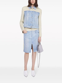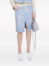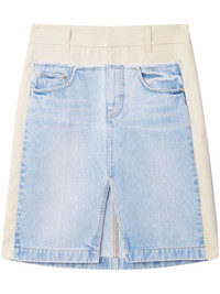 two-tone panelled denim skirt Highlights - Blue/beige - Cotton - Denim - Panelled design - Two-tone design - Tonal stitching - Belt loops - Concealed front fastening - High-waisted - Classic five pockets - Front slit - Straight hem - Knee-length Made in Italy Composition Cotton 100%, Polyester 100% Washing instructions Read Manufacturer Guidelines