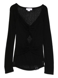 V-neck long sleeve T-shirt Highlights - Black - Long sleeves Imported Composition Fabric 100% SIZE & FIT Model measurements Height 5 ft 10 in(1.78 m) Bust/Chest 31.49 in(80 cm) Hips 37 in(94 cm) Waist 23.62 in(60 cm) Washing instructions Read Manufacturer Guidelines