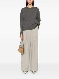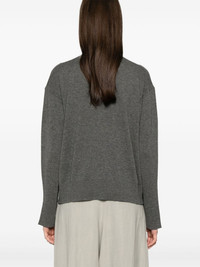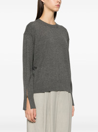 virgin wool sweater Highlights - Dark grey - Virgin wool - Knitted construction - Melange effect - Crew neck - Drop shoulder - Long sleeves with split cuffs - Ribbed cuffs and hem - Straight hem Imported Composition Virgin Wool 100% SIZE & FIT Model measurements Height 5 ft 10 in(1.78 m) Bust/Chest 33.85 in(86 cm) Hips 36.61 in(93 cm) Waist 26.77 in(68 cm) FittingInformation Designed to be unstructured, offering a loose fit throughout Made with a midweight knit, this piece offers some stretch