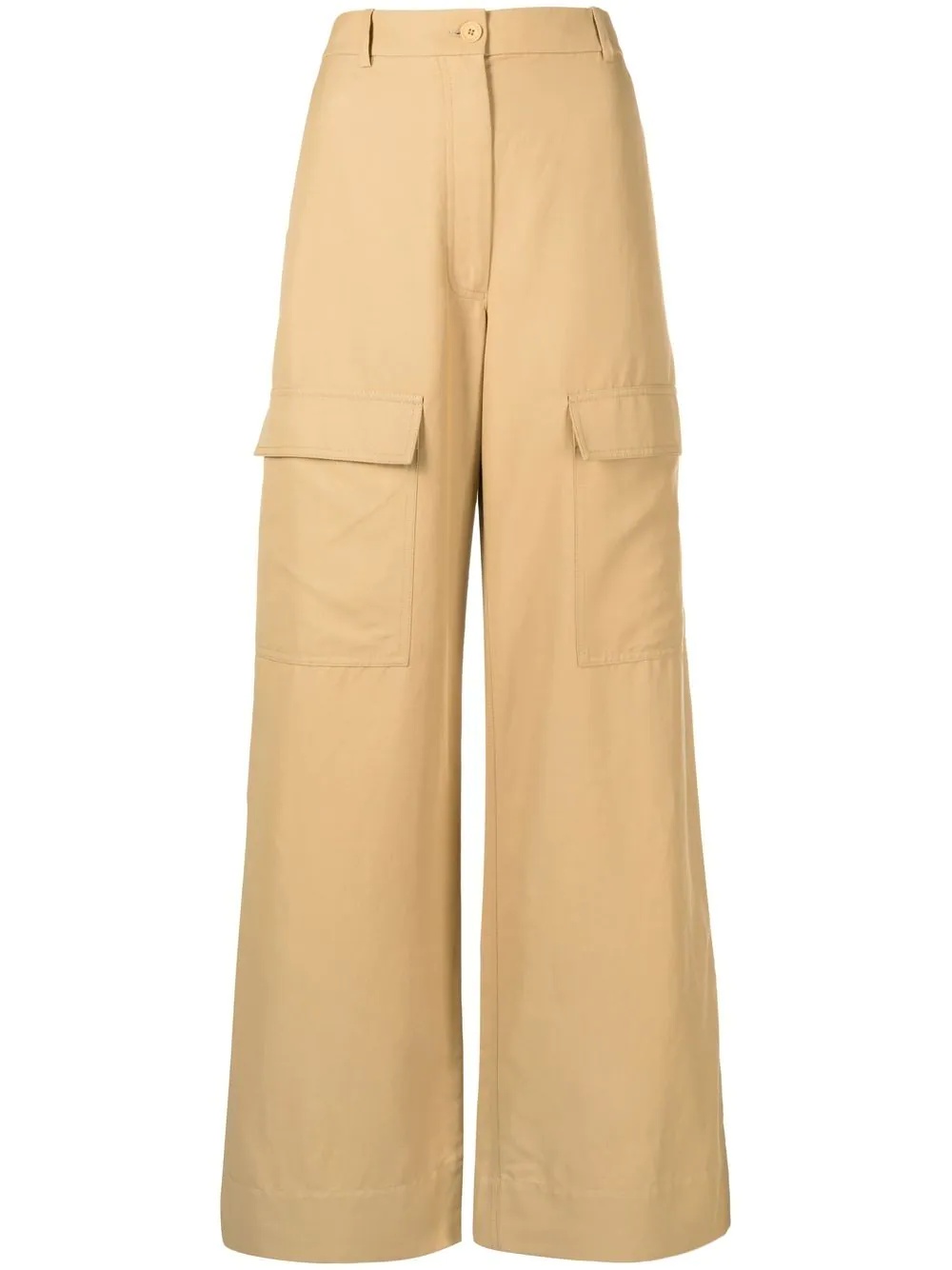 wide-leg flap-pocket trousers Highlights - Camel brown - Cotton-linen blend - Wide leg - Belt loops - Concealed fly and button fastening - Two side slit pockets - Two front patch pockets Imported Composition Outer: Polyamide 40%, Cotton 36%, Linen/Flax 24% Lining: Viscose 52%, Cotton 48% SIZE & FIT Model measurements Height 5 ft 10 in(1.77 m) Bust/Chest 32.67 in(83 cm) Hips 35.43 in(90 cm) Waist 23.62 in(60 cm) FittingInformation This piece fits true to size. We recommend you get your regular size Designed to be fitted at the waist and hips, loose over the leg Made with a mid-weight non-stretch fabric Washing instructions Dry Clean Only