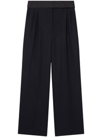 wide-leg tuxedo wool trousers Highlights - Black - Wool - Satin finish - Pleat detailing - Wide leg - Concealed front fastening - Two side inset pockets - Straight hem Imported Composition Wool 100%, Polyester 100% SIZE & FIT Measurement FRONT RISE 30.7 in(78 cm) HIPS 12.99 in(33 cm) WAIST 37 in(94 cm) Washing instructions Dry Clean Only