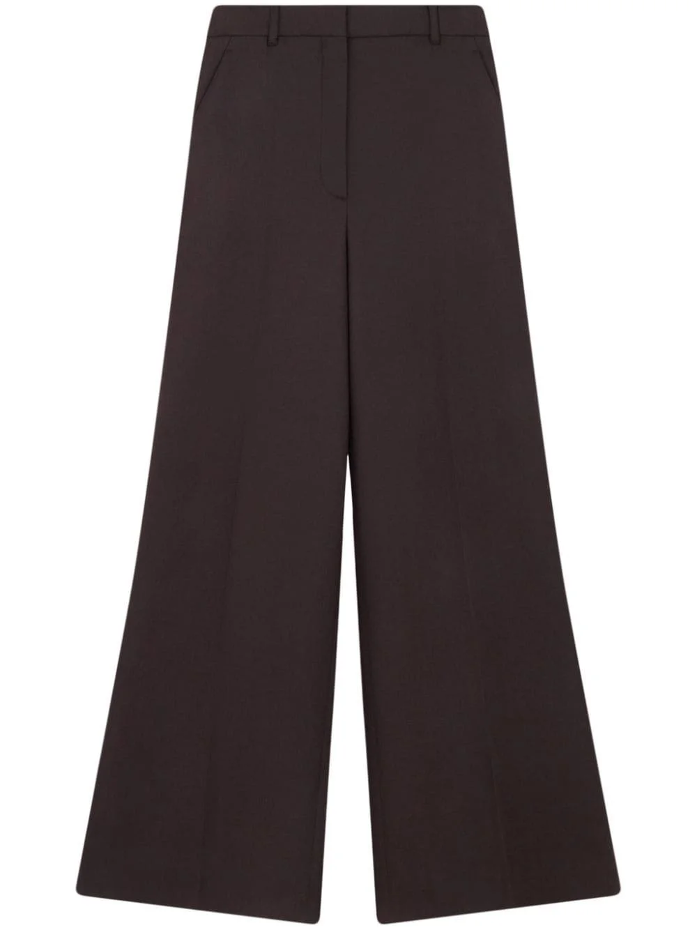 wool mid-rise flared trousers Highlights - Chocolate brown - Wool - Flannel - Mid-rise - Flared - Hook and zip fly fastening - Side inset pocket - Rear slit pocket Imported Composition RWS Wool 100% SIZE & FIT Measurement FRONT RISE 12.59 in(32 cm) INSIDE LEG 33.07 in(84 cm) HIPS 37.4 in(95 cm) WAIST 29.52 in(75 cm) FittingInformation Designed with a wide-leg cut, these trousers allow for a close fit at the waist and offer a loose and roomy fit over the leg Made from a midweight non-stretch fabric This piece fits true to size – take your usual size