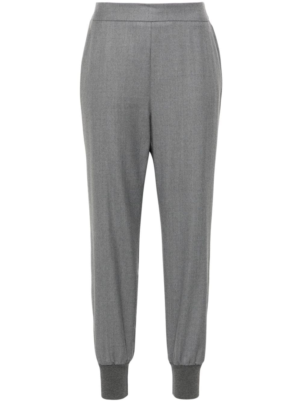 wool tapered trousers Highlights - Light grey - Wool - Melange effect - Pressed crease - Rear elasticated waistband - Tapered leg - Two side slit pockets - Ribbed ankles Imported Composition RWS Wool 100%, Cotton 98%, Spandex/Elastane 1%, Polyamide 1% SIZE & FIT Model measurements Height 5 ft 9 in(1.75 m) Bust/Chest 31.88 in(81 cm) Hips 34.64 in(88 cm) Waist 24.01 in(61 cm) FittingInformation Designed for a relaxed tapered cut, these trousers allow for a close fit at the waist and offer a loose fit at the thighs, with a closer fit toward the ankles The zipped hems allow you to adjust the fit throughout the calves and ankles Made from a midweight fabric This piece fits true to size – take your usual size