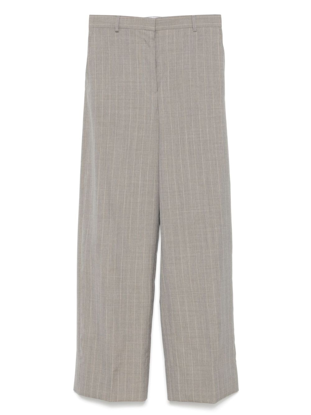 wool trousers Highlights - Ash grey - Concealed front fastening - Two side slit pockets - Two rear jetted pockets - Pinstripe pattern Imported Composition Wool 100% SIZE & FIT Model measurements Height 5 ft 10 in(1.79 m) Bust/Chest 33.07 in(84 cm) Hips 35.82 in(91 cm) Waist 24.01 in(61 cm) FittingInformation Designed with a wide-leg cut, these trousers allow for a close fit at the waist and offer a loose and roomy fit over the leg Made from a midweight non-stretch fabric