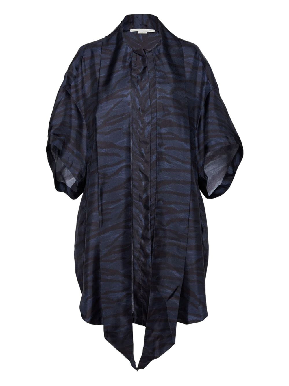 zebra-print shirt dress Highlights - Dark blue - Zebra print - Short sleeves - Button fastening - Tie neck Imported Composition Fabric 100% Washing instructions Read Manufacturer Guidelines